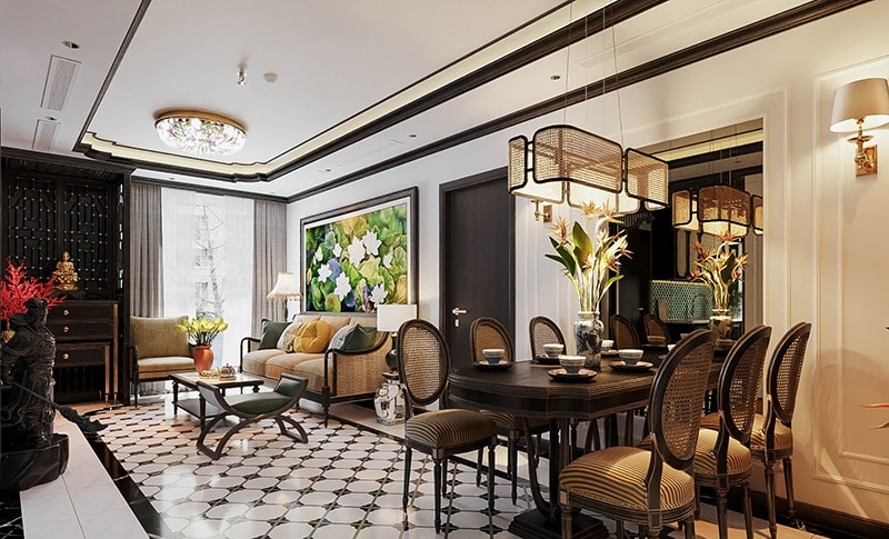 - Phù hợp: Căn hộ muốn tạo điểm nhấn độc đáo, đậm chất Á Đông.
